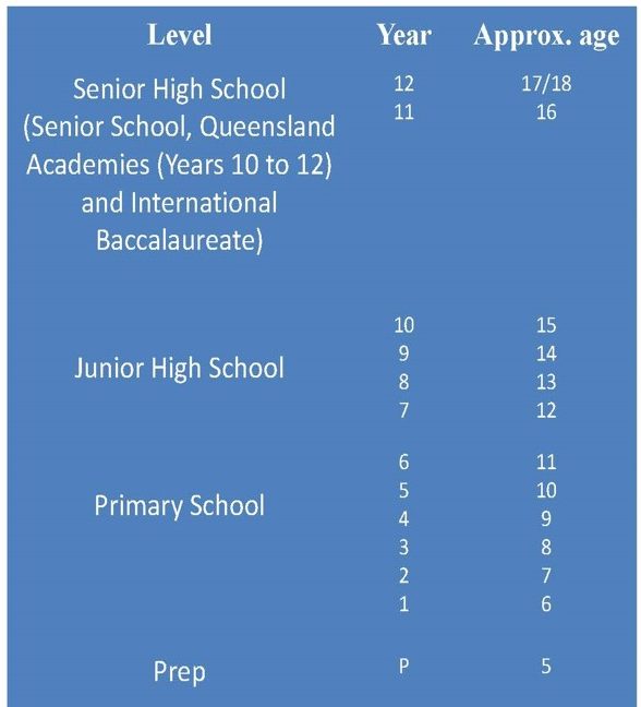 - มัธยมศึกษาตอนปลาย (Senior Colleges) คือ Year 11 และ Year 12