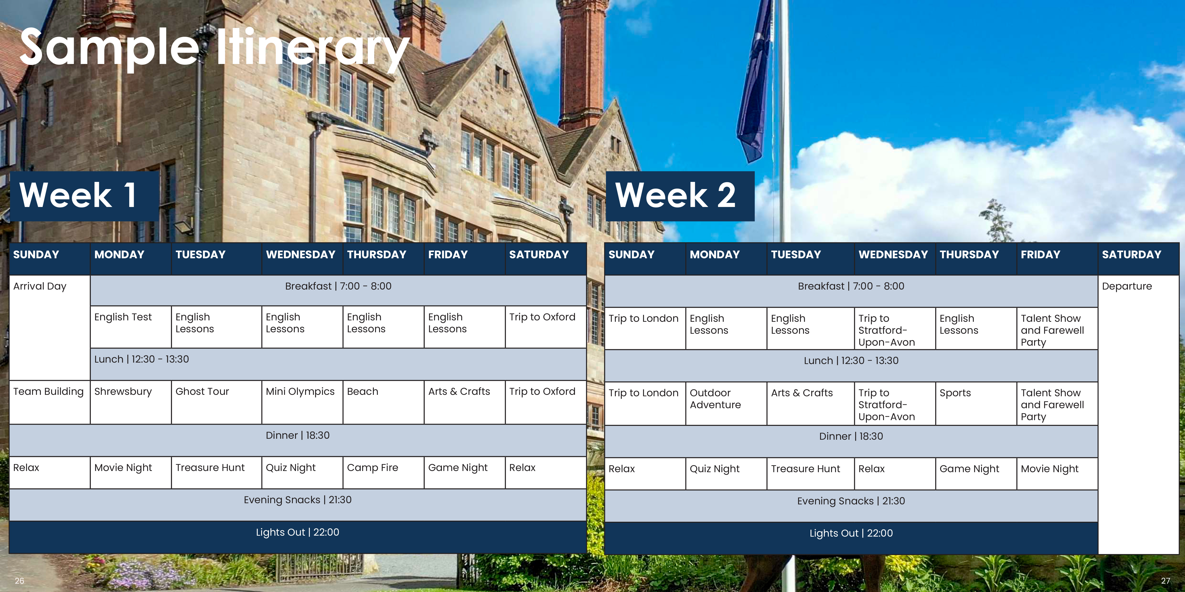 - Students are expected to attend all meals, classes and organised activities and excursions.