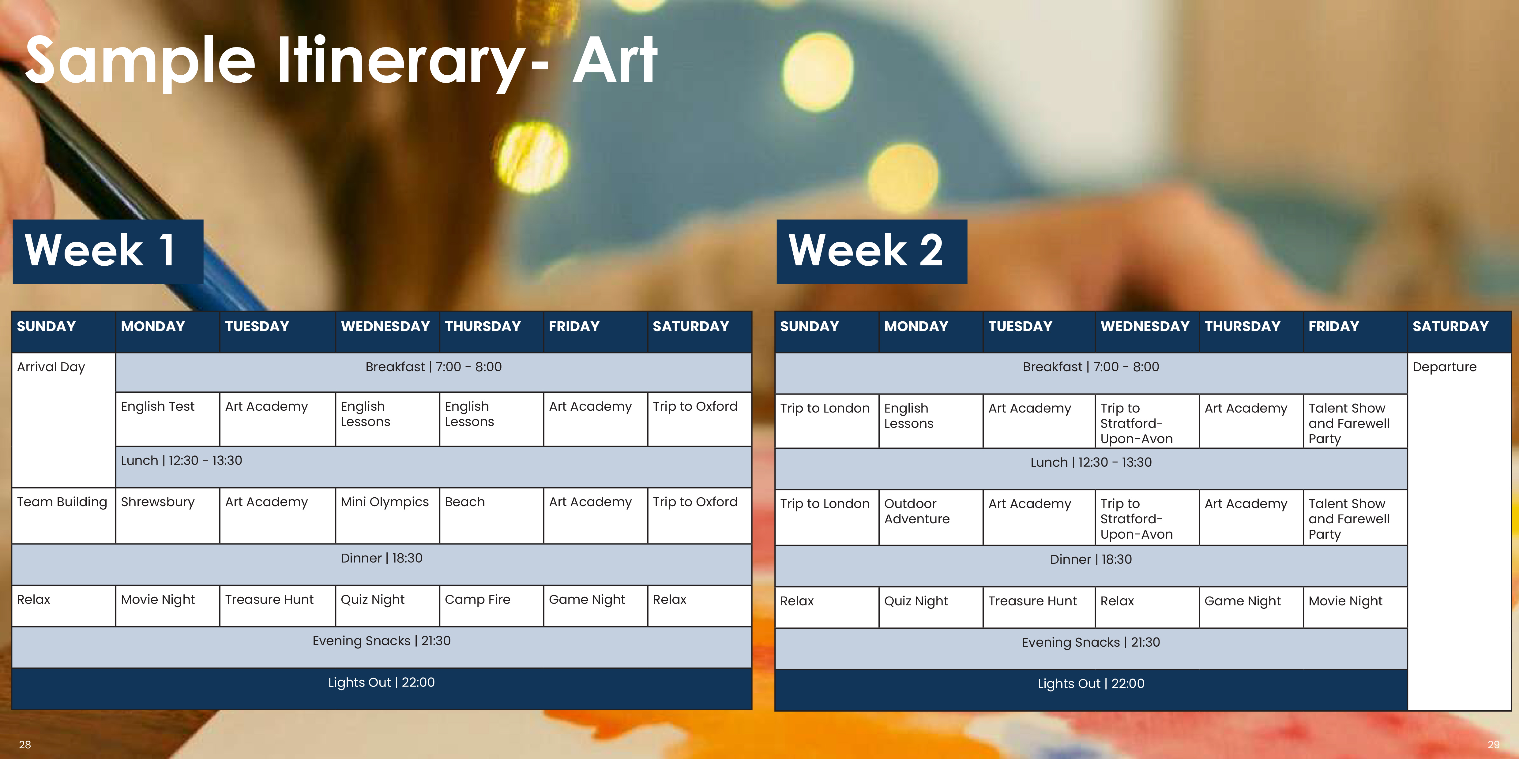 We aim to develop students’ independence, boosting their confidence, resilience and ability to work with others. Each of our camps are tailored and offers the opportunity for personal development, character-building and most importantly having FUN.